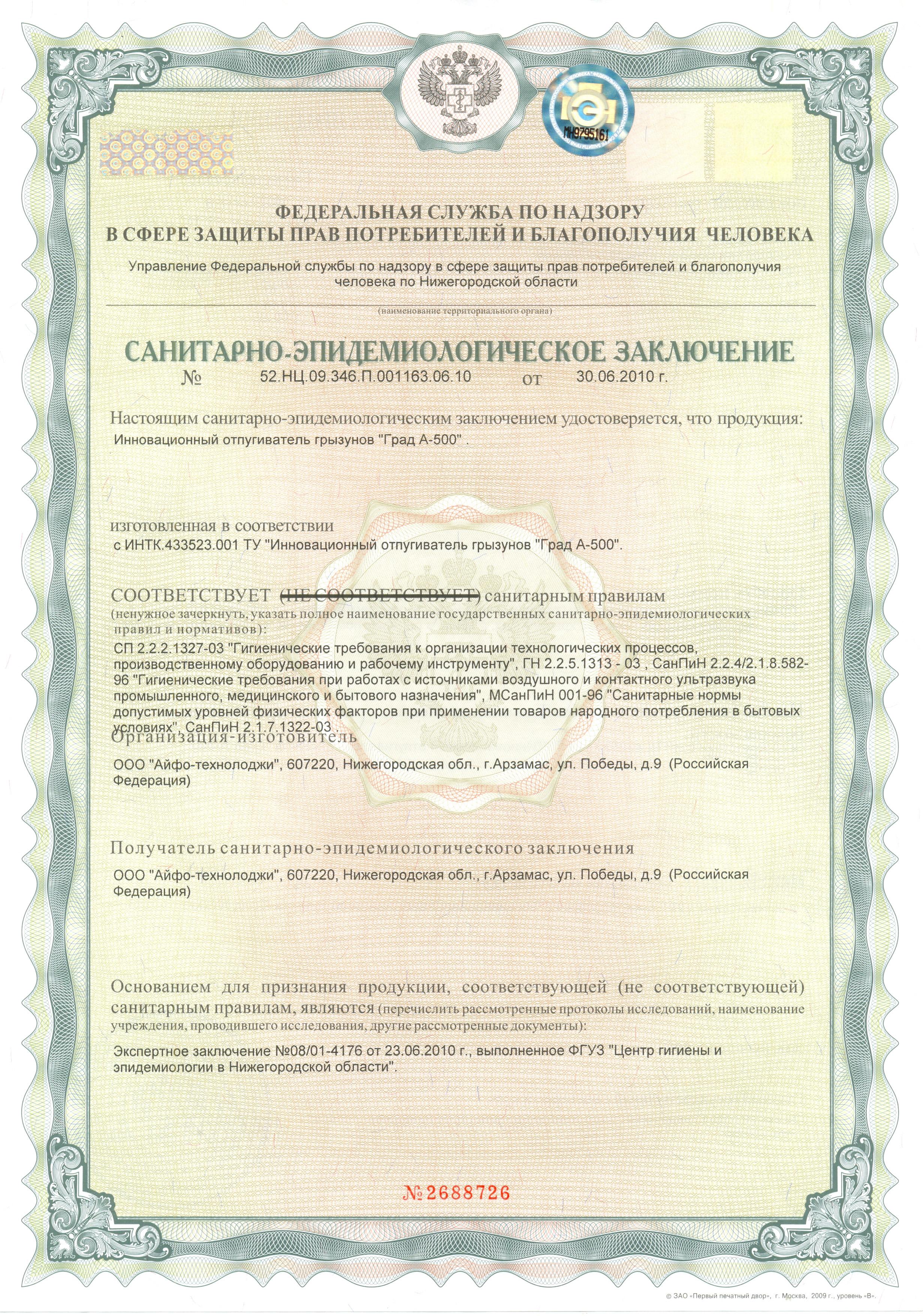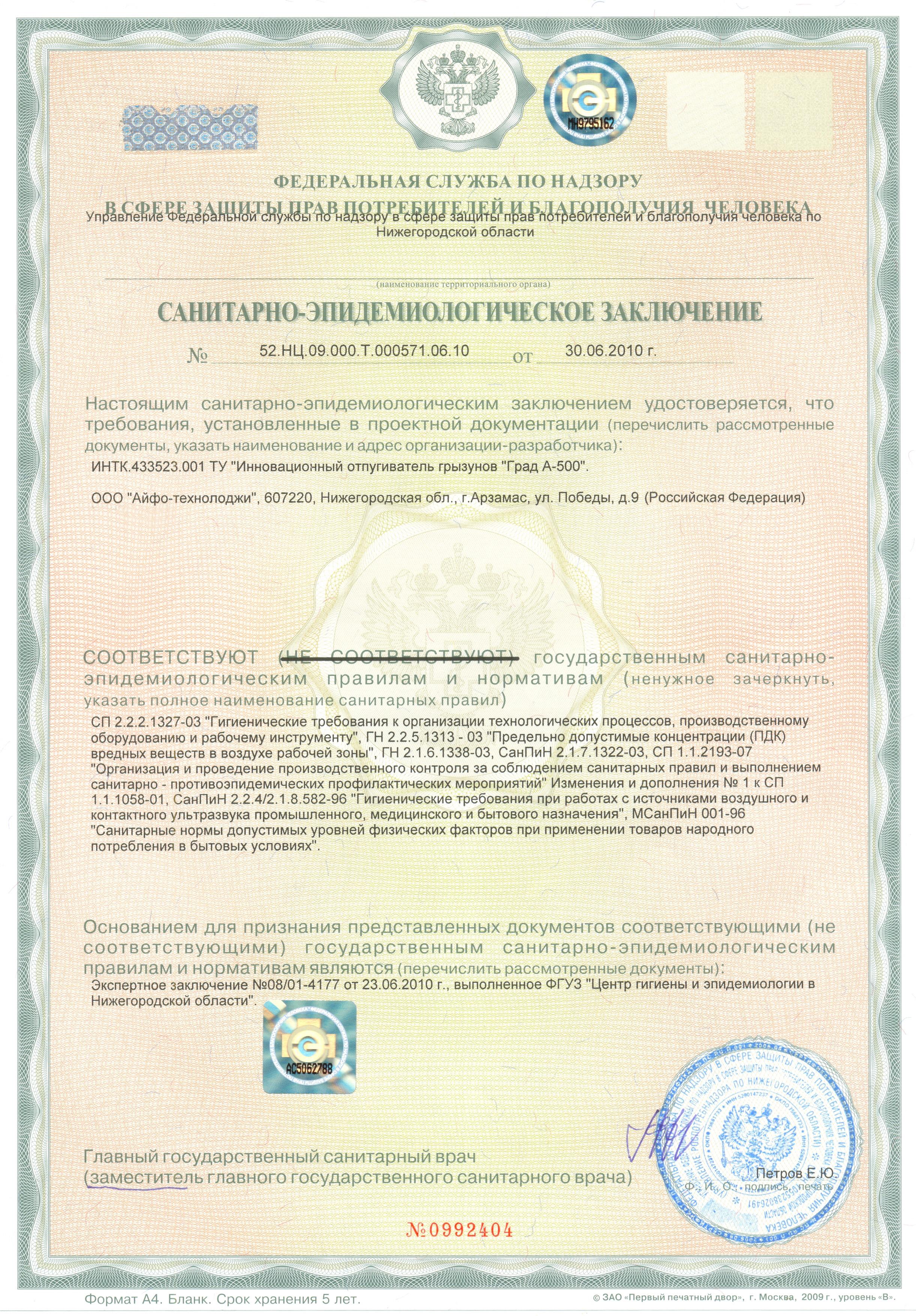 Отпугиватель грызунов и кротов «Град А-500» разработан и произведен в России. В процессе изготовления продукции использовалась комплексная 5-ти ступенчатая система для контроля качества, что является гарантией соответствия заявленным производителем техническим характеристикам.