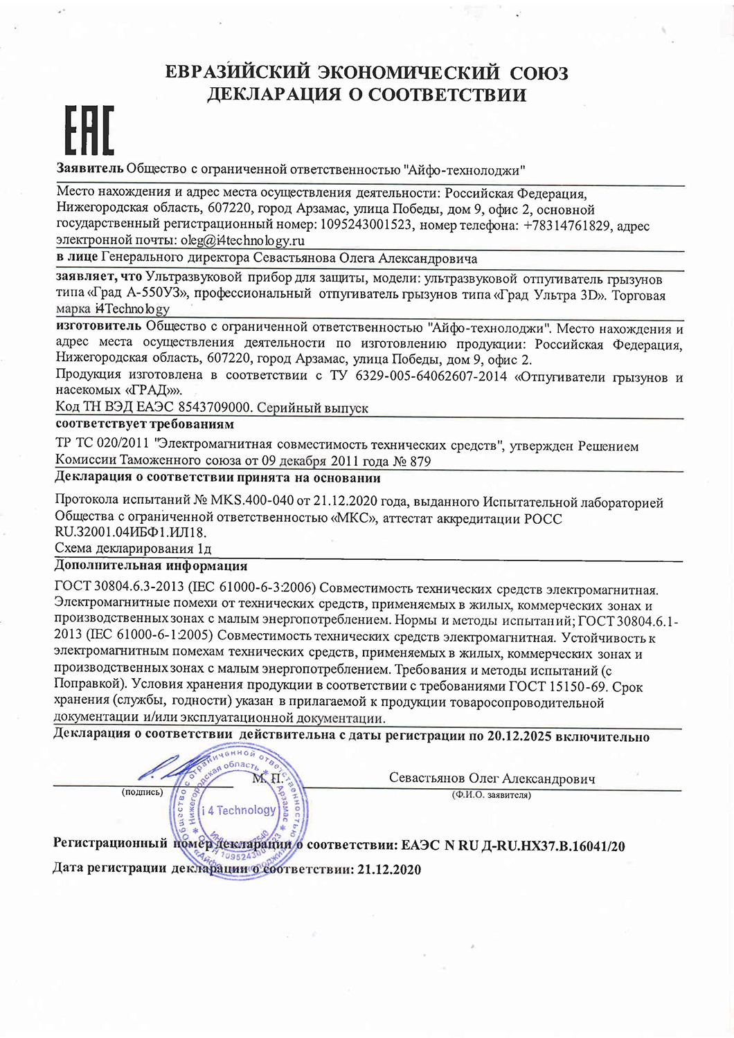Прибор сертифицирован и имеет патент на собственную уникальную разработку!